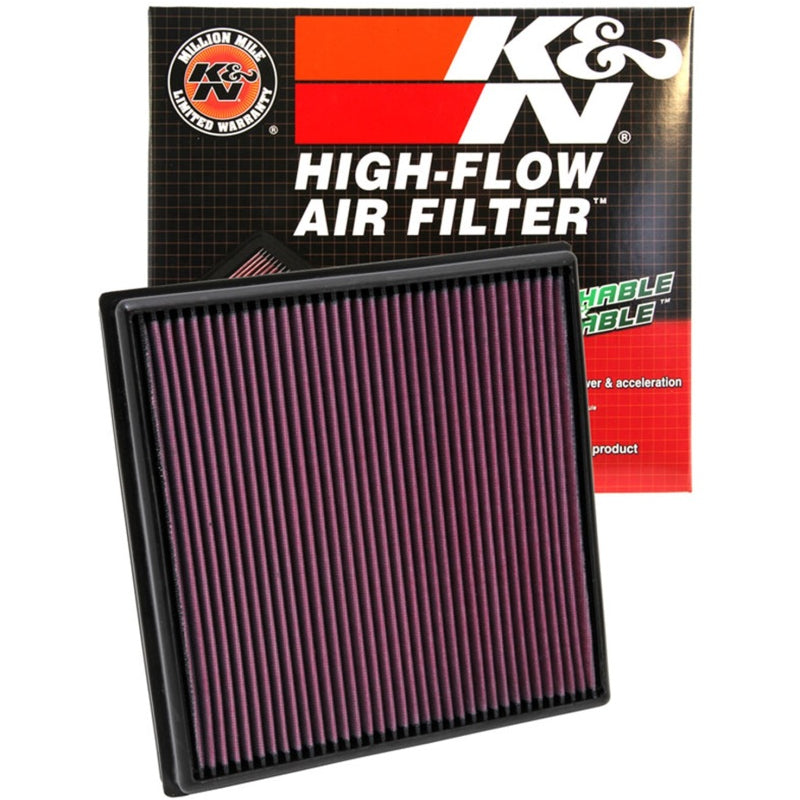 K&N washable, reusable High-Flow Air Filters feature a state-of-the-art design of layered, oiled cotton media engineered to improve airflow and capture contaminants, and are designed to provide an increase in horsepower. Each performance air filter is reusable, engineered to last for the entire lifespan of your vehicle, and backed by K&N's 10-Year/Million Mile Limited Warranty. K&N drop-in replacement filters are designed to install easily into your factory air box. Upgrade today and start enjoying superior airflow and superior performance from K&N's most popular product!