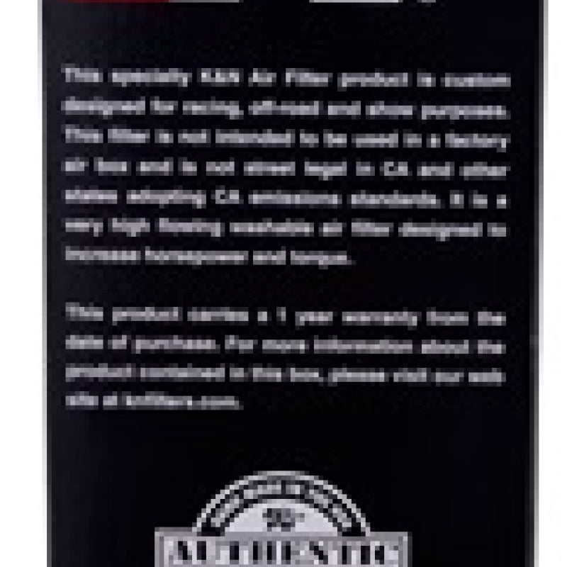 K&N washable, reusable High-Flow Air Filters feature a state-of-the-art design of layered, oiled cotton media engineered to improve airflow and capture contaminants, and are designed to provide an increase in horsepower. Each performance air filter is reusable, engineered to last for the entire lifespan of your vehicle, and backed by K&N's 10-Year/Million Mile Limited Warranty. K&N drop-in replacement filters are designed to install easily into your factory air box. Upgrade today and start enjoying superior airflow and superior performance from K&N's most popular product!