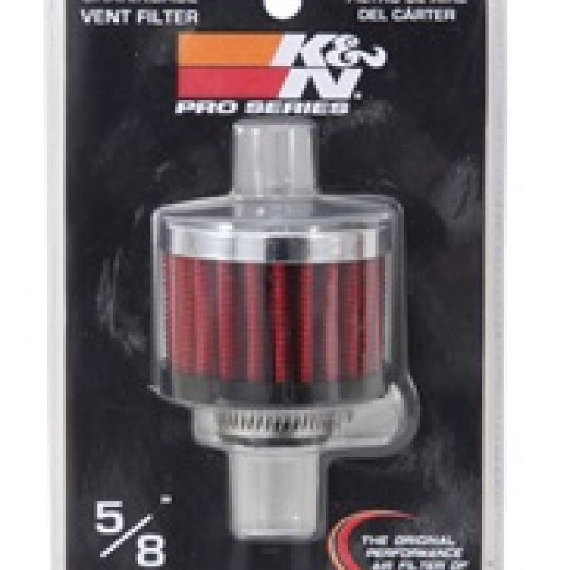 K&N crankcase vent filters are perfect for racing applications, vintage cars or individuals who want to add some aesthetics to their classic carbureted engine. The 62-1340 crankcase vent filter has a K&N embossed chrome-plated steel top with a black rubber base. The 5/8 inch diameter zinc tube is designed to push in and clamp directly on to metal or plastic tubing where venting is needed. Constructed with a synthetic filter media it can be cleaned and reused repeatedly. Note: Legal in California only for racing vehicles which may never be used, registered, or licensed for use upon a highway. See knfilters.com for CARB status on each part for a specific vehicle.
