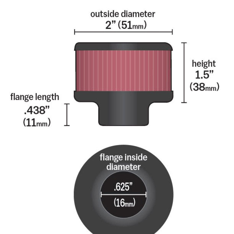 K&N 0.625 inch ID 2 inch OD 1.5 inch H Clamp On Crankcase Vent Filter