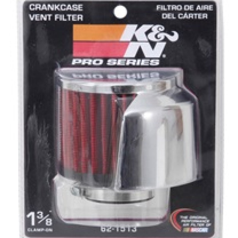 K&N crankcase vent filters are perfect for racing applications, vintage cars or individuals who want to add some aesthetics to their classic carbureted engine. The 62-1513 crankcase vent filter has a K&N embossed chrome top, rubber base and comes with a deflector shield to protect against engine heat. The 1-3/8 inch inside diameter rubber flange is designed to clamp directly onto metal or plastic tubing where venting is needed. This air filter is constructed with non-woven synthetic filter media so it can be cleaned and reused repeatedly. Note: Legal in California only for racing vehicles which may never be used, registered, or licensed for use upon a highway. See knfilters.com for CARB status on each part for a specific vehicle.