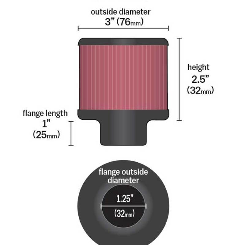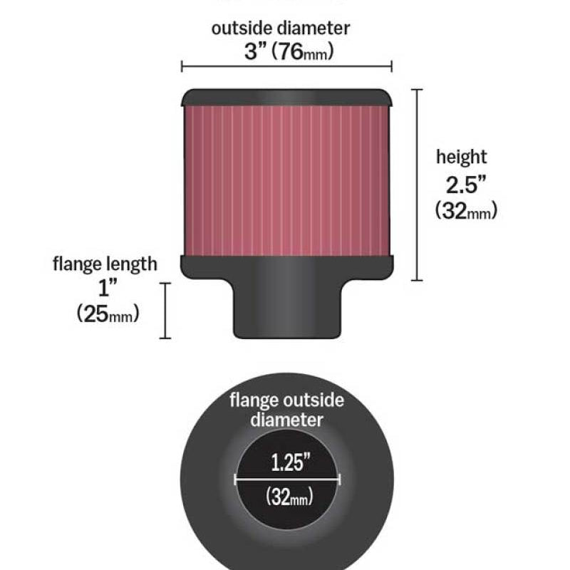 K&N 1in Flange L x 3in OD x 2.5in Height Clamp On Crankcase Vent Filter