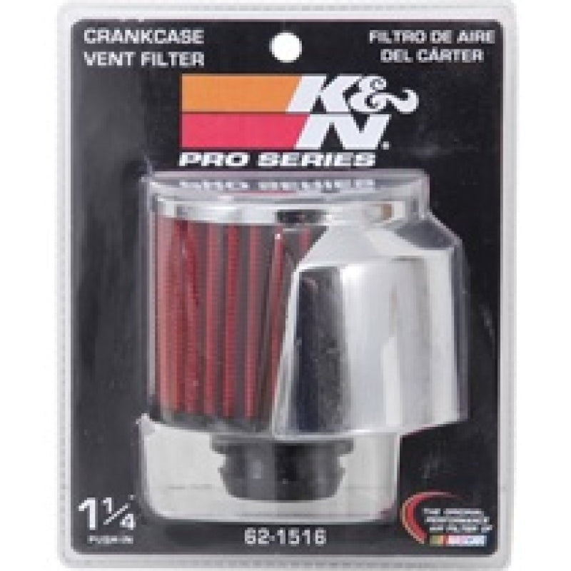 K&N crankcase vent filters are perfect for racing applications, vintage cars or individuals who want to add some aesthetics to their classic carbureted engine. The 62-1516 crankcase vent filter has a K&N embossed chrome top, rubber base and comes with a deflector shield to protect against engine heat. The 1-1/4 inch diameter rubber flange is designed to push directly into the valve cover where venting is needed. This air filter is constructed with non-woven synthetic filter media so it can be cleaned and reused repeatedly. Note: Legal in California only for racing vehicles which may never be used, registered, or licensed for use upon a highway. See knfilters.com for CARB status on each part for a specific vehicle.