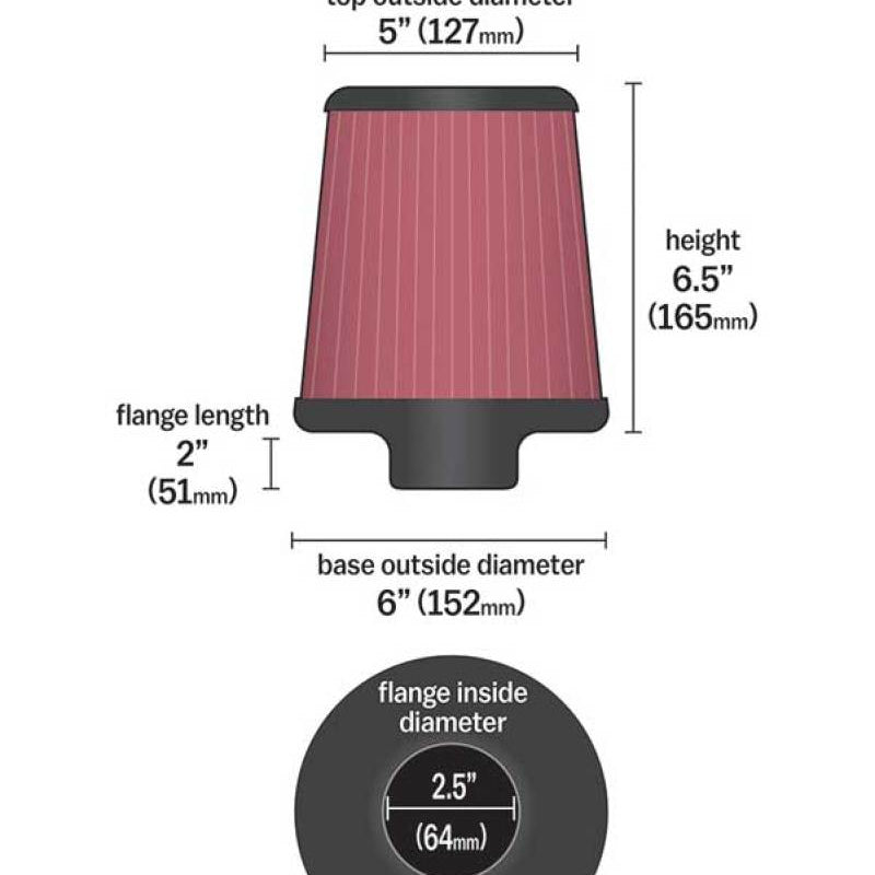 K&N Filter Universal Rubber Filter 2 1/2 inch Flange 6 inch Base 5 inch Top 6 1/2 inch Height