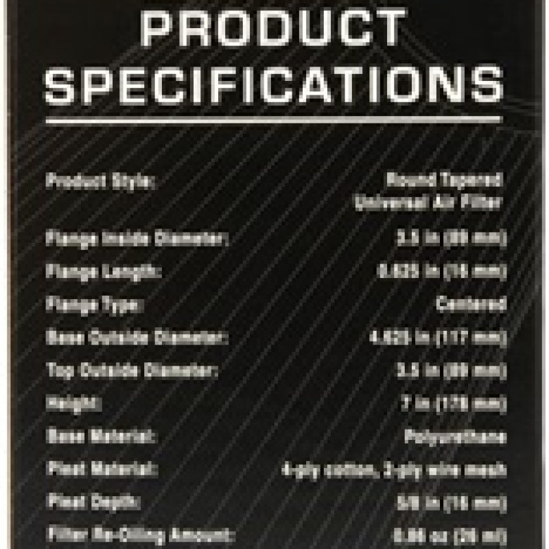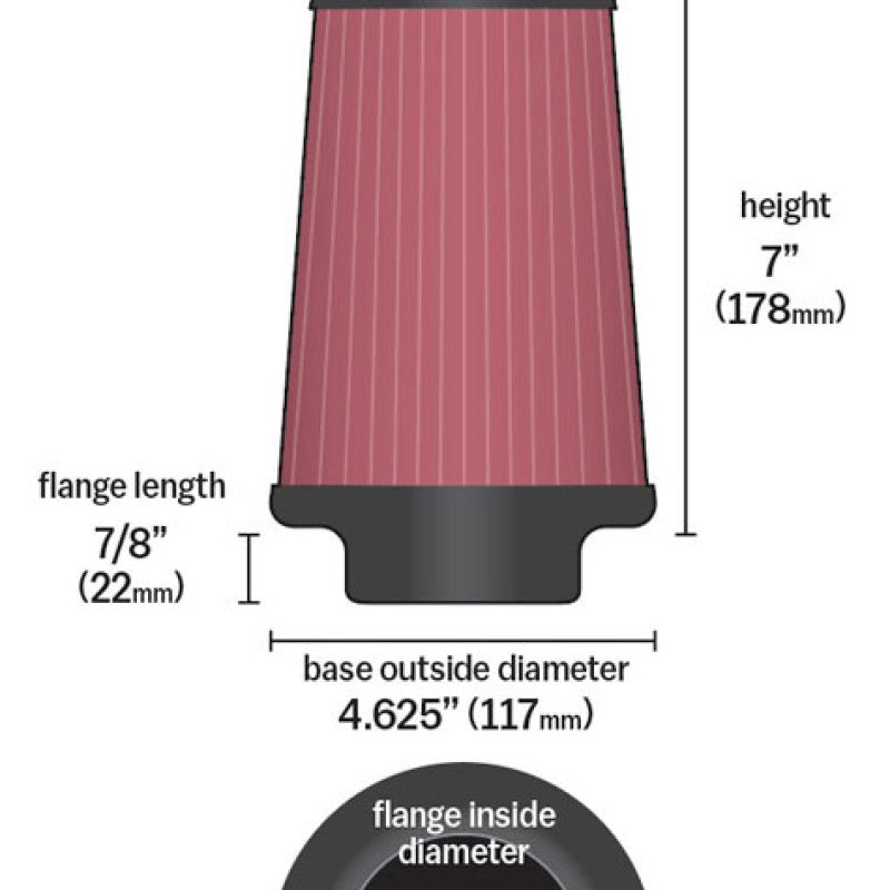 K&N Filter Universal Rubber Filter 3 1/2 inch Flange 4 5/8 inch Base 3 1/2 inch Top 7 inch Height