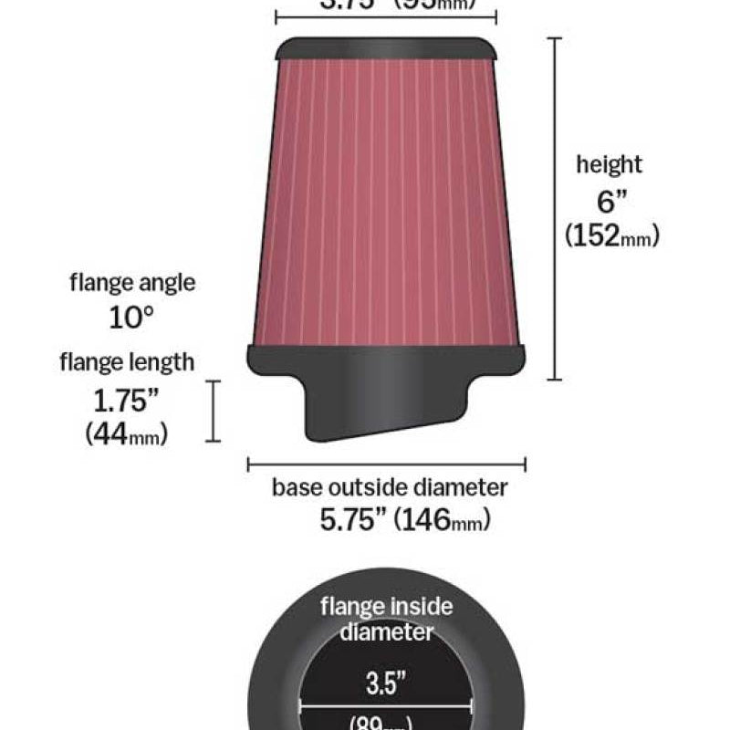 K&N Round Tapered Universal Air Filter 3.5in Flange ID / 5.75in Base OD / 3.75in Top OD / 6in H