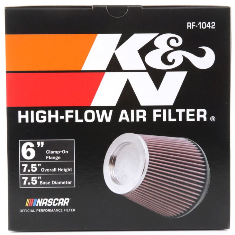 K&N Round Tapered Universal Air Filter 6in Flange ID x 7.5in Base OD x 5in Top OD x 6.5in Height