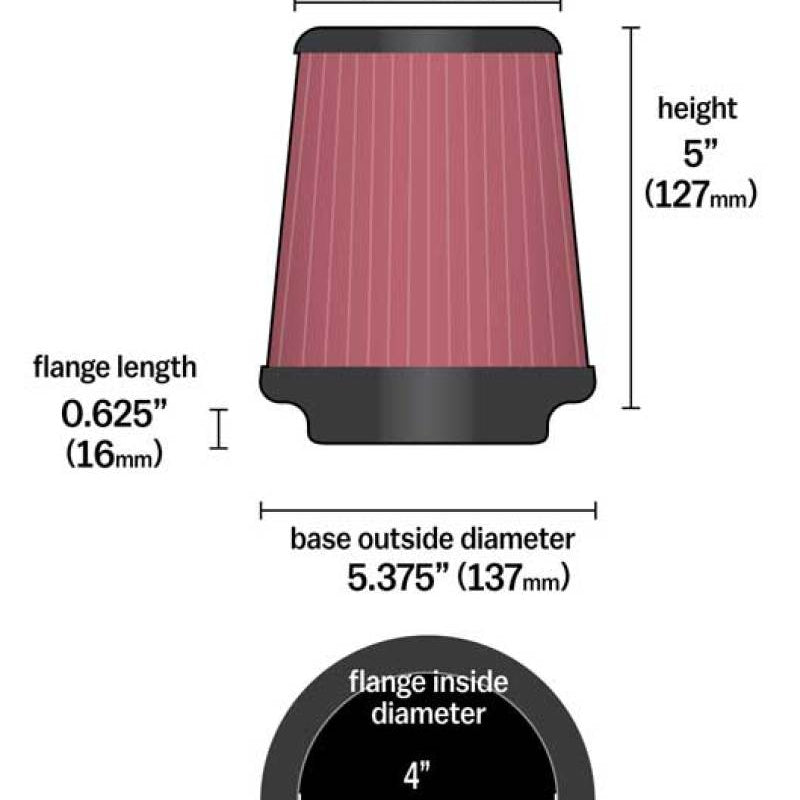 K&N Universal Air Filter 4in Flange / 5-3/8 in Base / 4-1/2in Top / 5in Height