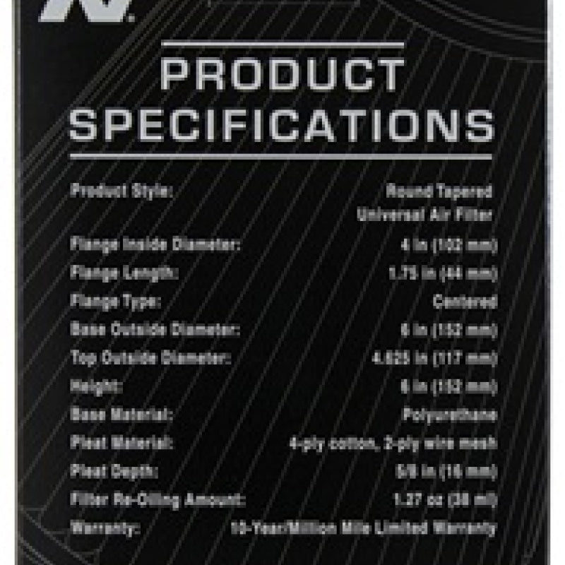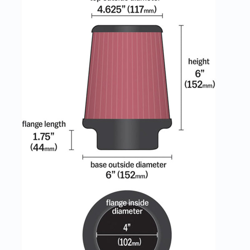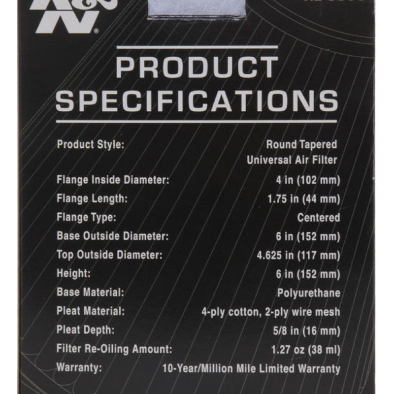 K&N Universal Air Filter (4in. Flange / 6in. Base OD / 4-5/8in. Top OD / 6in. Height)