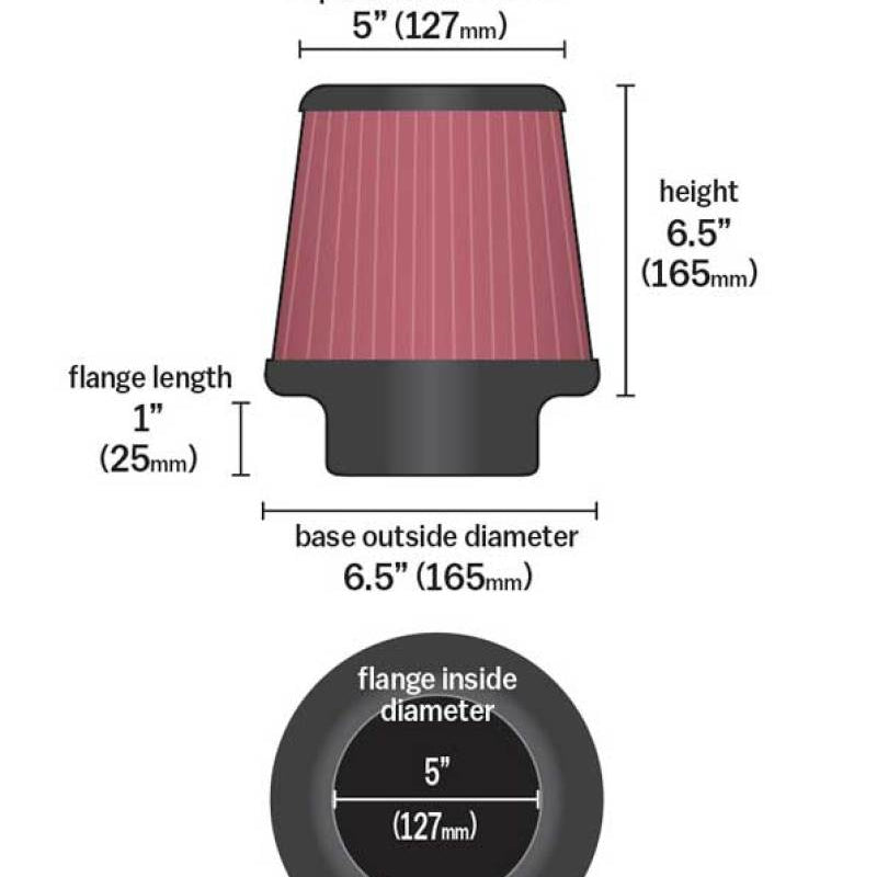 K&N Universal Clamp-On Air Filter 5in FLG / 6-1/2in B / 5in T / 6-1/2in H