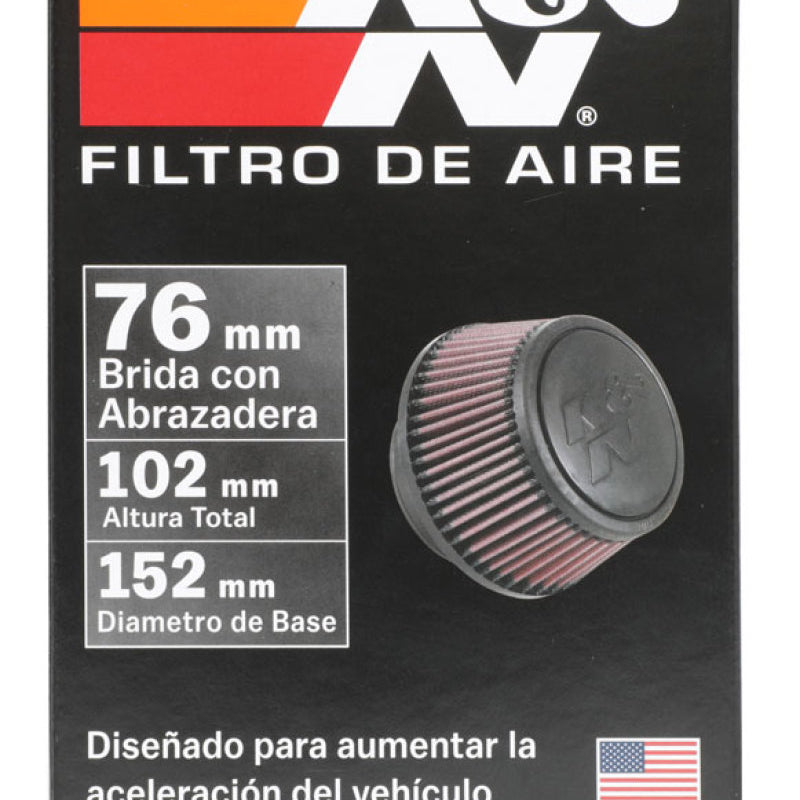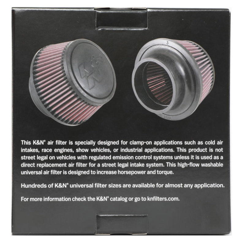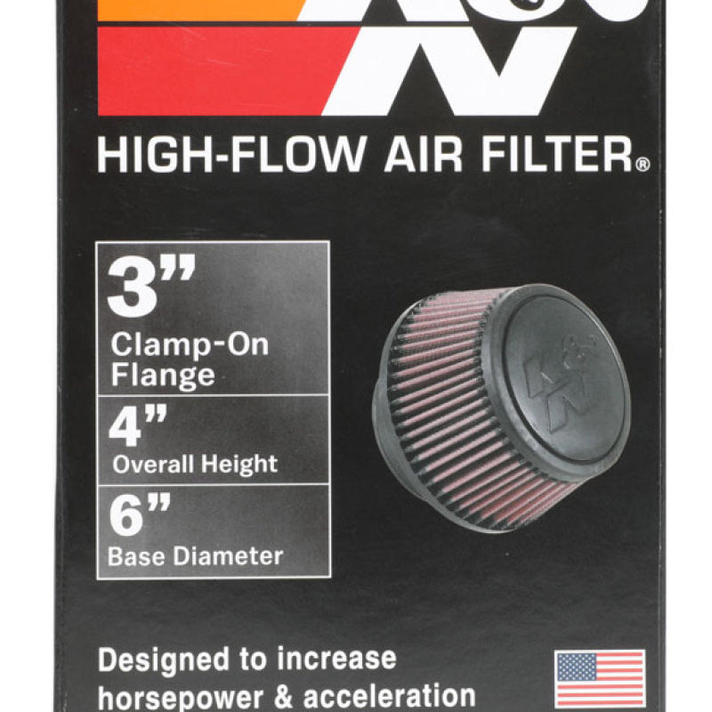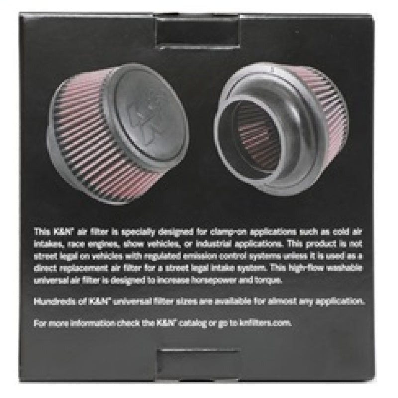 K&N Universal Round Clamp-On Air Filter 3in Flange ID x 6in Base OD x 4.625in Top OD x 3in Height