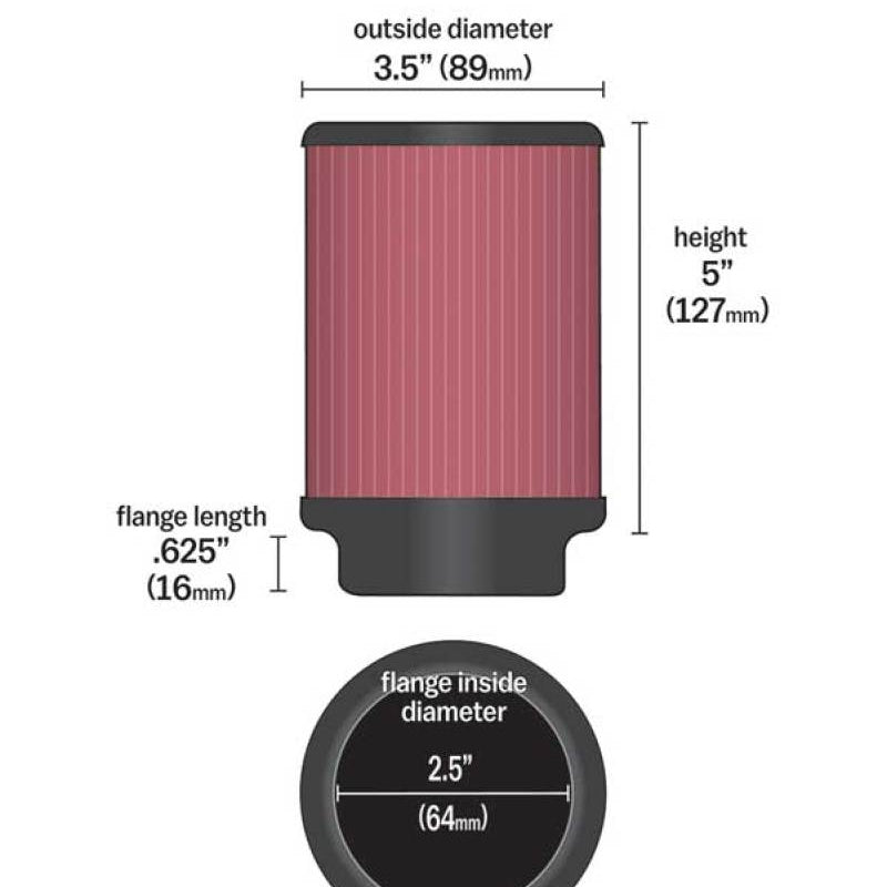 K&N Universal Rubber Filter 2.5in Flange ID x 3.5in OD x 5in Height