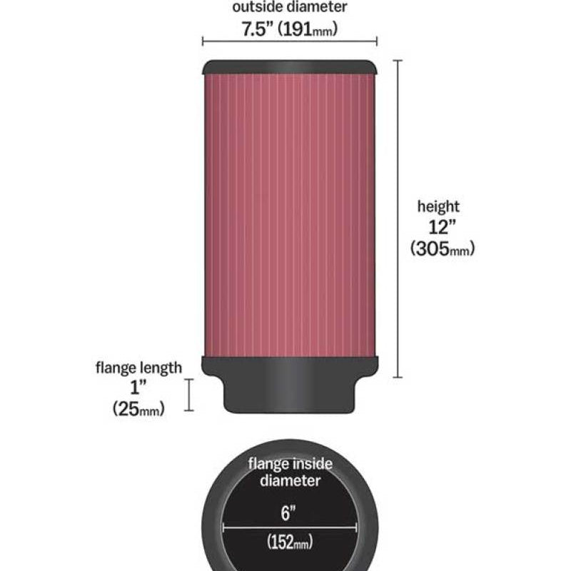 K&N Universal Rubber Filter 6in ID 7.5in OD 12in H