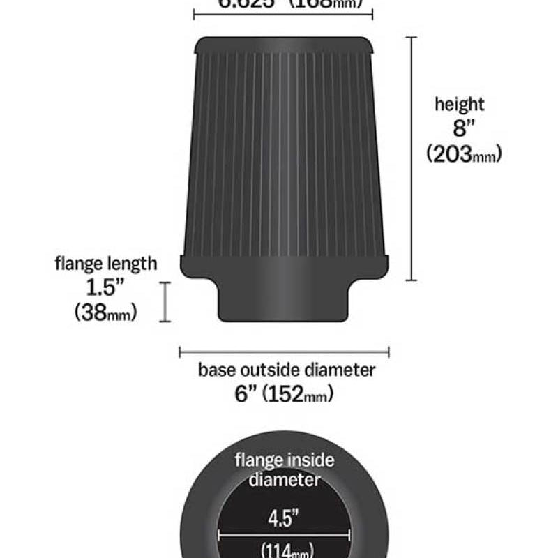K&N Universal Rubber Filter-Round Tapered 4.5in Flange ID x 8in Base OD x 6.625in Top OD x 8in H