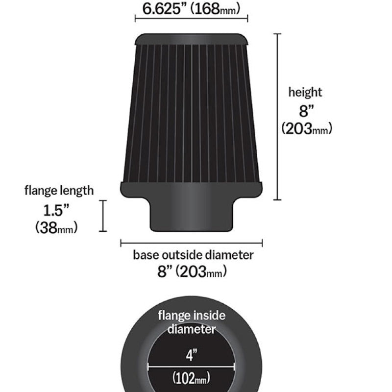 K&N Universal Rubber Filter-Round Tapered 4in Flange ID x 8in Base OD x 6.625in Top OD x 8in H