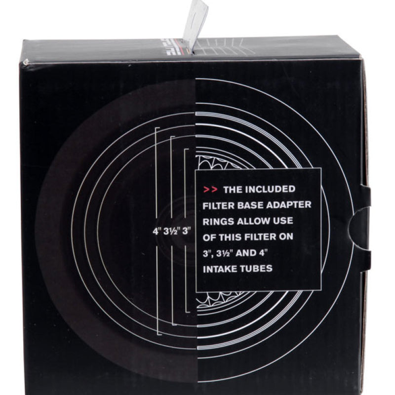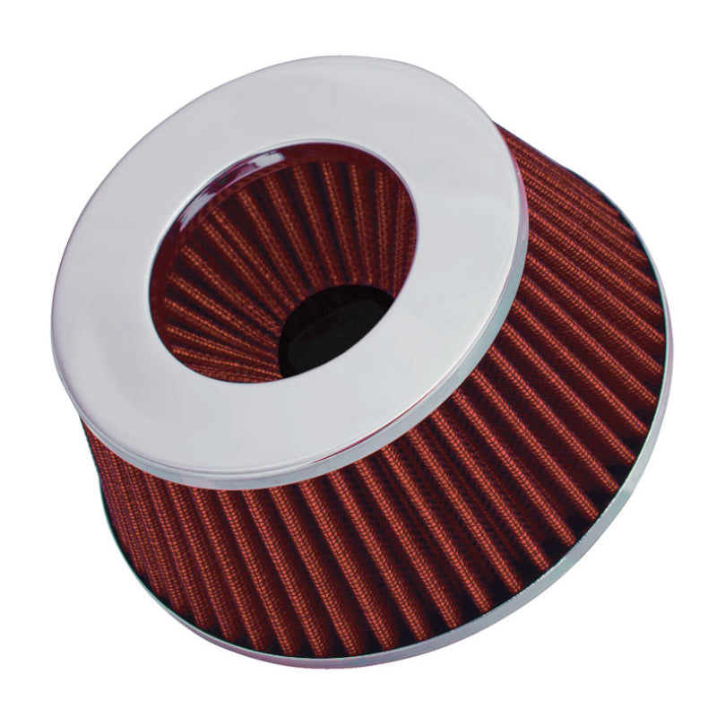 This Spectre High Performance Racing (HPR) Air Filter is a red media clamp-on cone filter that can be used for a wide variety of applications. Using the included adapter rings, this filter can fit 3 inch, 3-1/2 inch, and 4 inch diameter tubes. Manufactured using high quality materials throughout, including oiled synthetic media, urethane, and steel mesh, this washable performance filter is precision engineered for low restriction and better performance. This filter's top houses an inverted cone filter for improved service life and enhanced flow potential. Designed with a triple chrome plated steel top and base, this 2-1/2 inch tall air filter is factory pre-oiled and ready to use.