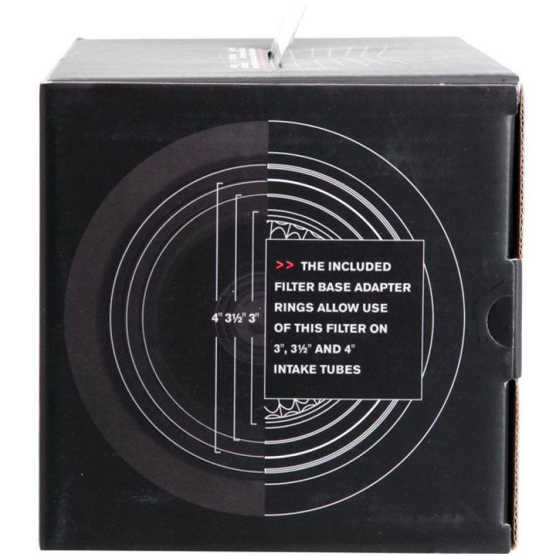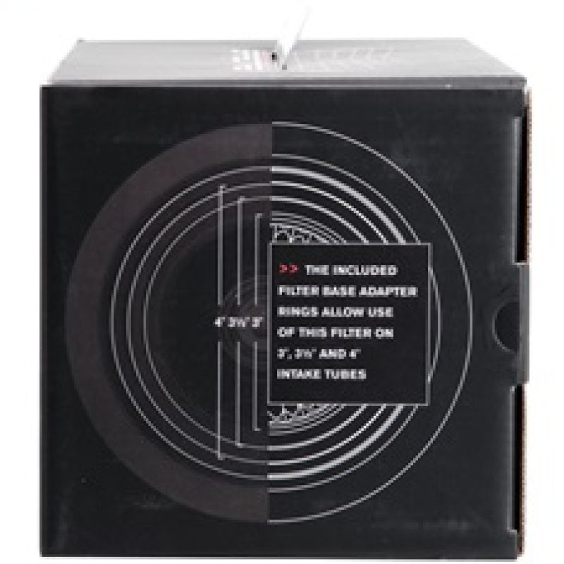 This Spectre High Performance Racing (HPR) Air Filter is a blue media clamp-on cone filter that can be used for a wide variety of applications. Using the included adapter rings, this filter can fit 3 inch, 3-1/2 inch, and 4 inch diameter tubes. Manufactured using high quality materials throughout, including oiled synthetic media, urethane, and steel mesh, this washable performance filter is precision engineered for low restriction and better performance. This filter's top houses an inverted cone filter for improved service life and enhanced flow potential. Designed with a triple chrome plated steel top and base, this 9-1/2 inch tall air filter is factory pre-oiled and ready to use.