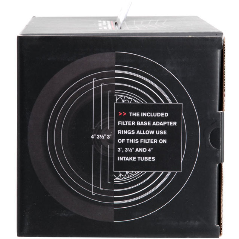 This Spectre High Performance Racing (HPR) Air Filter is a red media clamp-on filter that can be used for a wide variety of applications. Using the included adapter rings, this filter can fit 3 inch, 3-1/2 inch, and 4 inch diameter tubes. Manufactured using high quality materials throughout, including oiled synthetic media, urethane, and steel mesh, this washable performance filter is precision engineered for low restriction and better performance. This filter's top houses an inverted cone filter for improved service life and enhanced flow potential. Designed with a triple chrome plated steel top and base, this 9-1/2 inch tall air filter is factory pre-oiled and ready to use.
