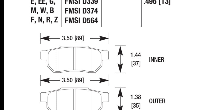 Hawk 03-07 350z / G35 / G35X w/o Brembo HP+ Street Rear Brake Pads