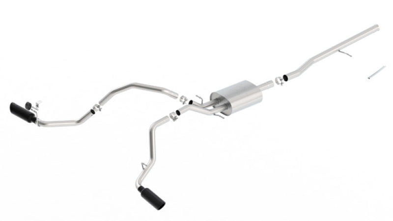 Borla 14 Sierra 1500 C/B S-Type Exhaust/2.75in Into Dual 2.25in Out 4in Split Rear Exit-Black Chrome