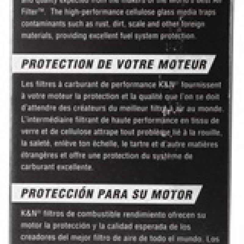 K&N Performance Fuel Filters are built for high flow rates and capacity while they provide outstanding filtration. They have a high strength carbon steel housing and a high performance rolled seam that exceeds OEM pressure requirements. Their high performance cellulose glass media traps contaminants such as rust, dirt, scale and other foreign materials.