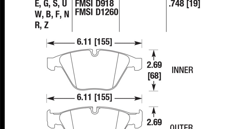Hawk 04-10 BMW 535i/545i/550i / 04-10 645Ci/650i /02-09 745i/745Li/750 HP+ Street Brake Pads