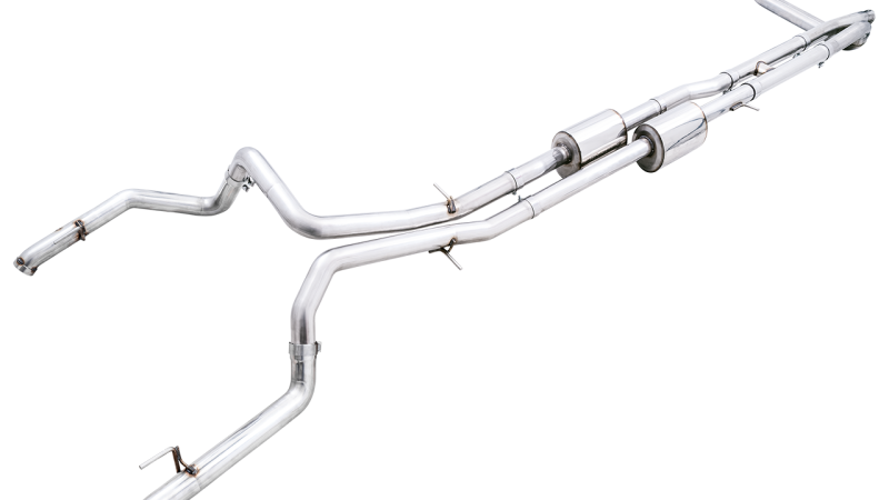 AWE Tuning 22-23 GMC Sierra 1500 AT4X 6.2L 0FG Catback Split Dual (Flat Bumper) - Bashguard(No Tips)
