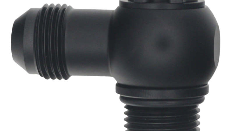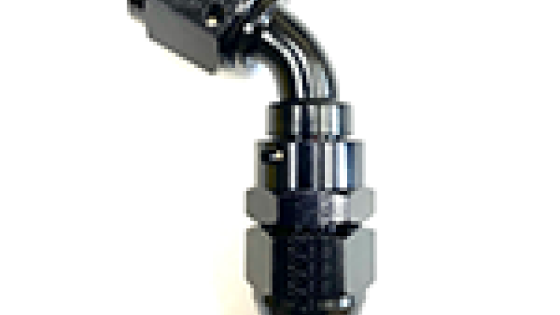 DeatschWerks 8AN ORB Male to 8AN Male Flare Low Profile 90-Degree Swivel - Anodized Matte Black