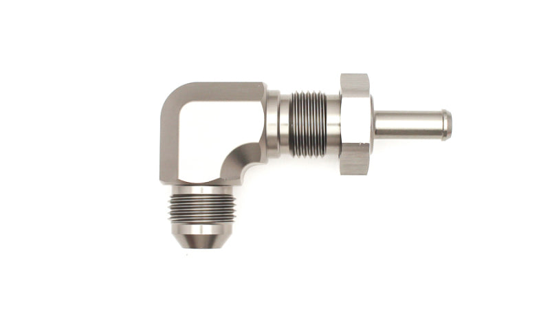 DeatschWerks 8AN Male Flare to 5/16in Male Barb Bulkhead Adapter 90-Degree - Anodized Matte Black