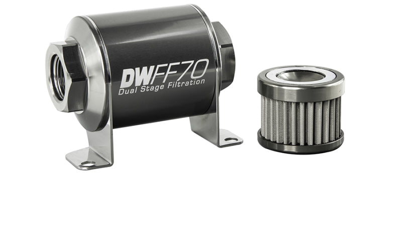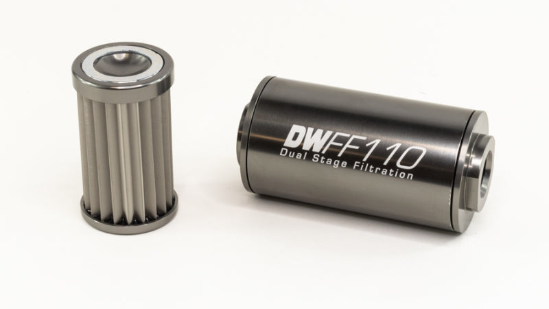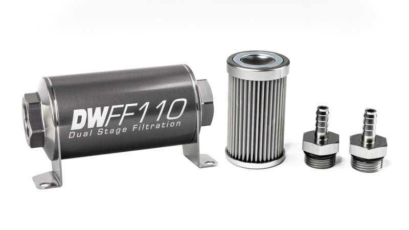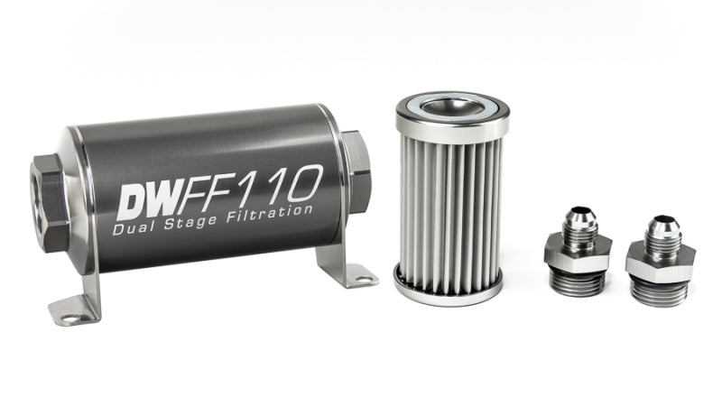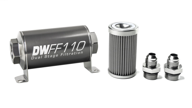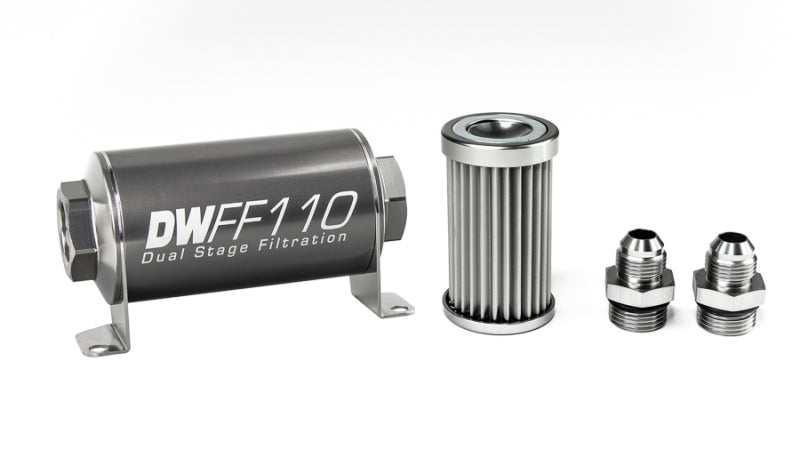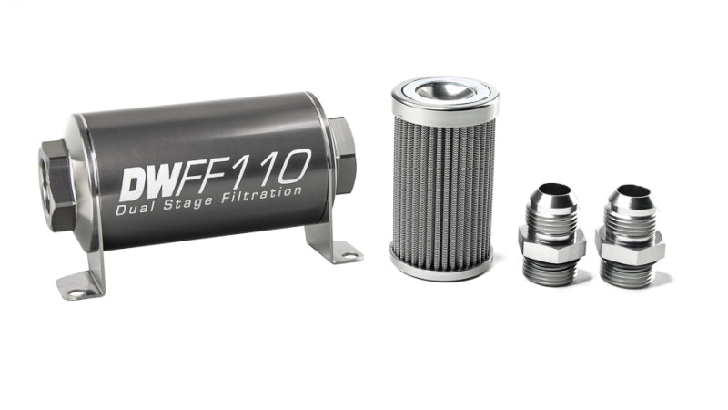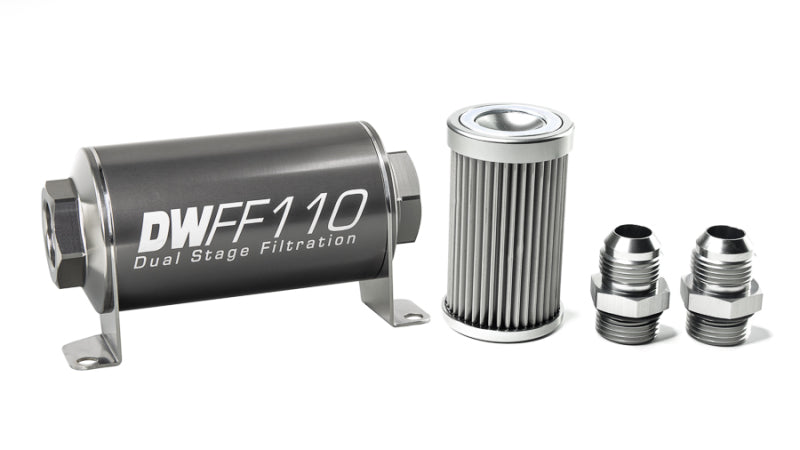 DeatschWerks Stainless Steel 10AN 10 Micron Universal Inline Fuel Filter Housing Kit (110mm)