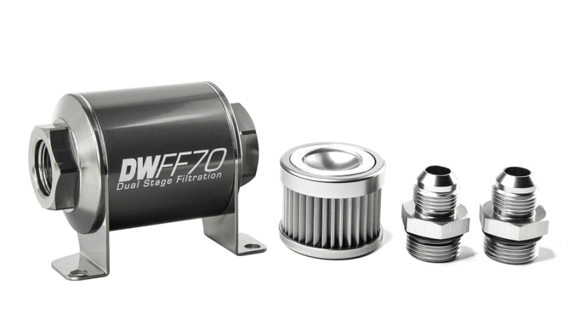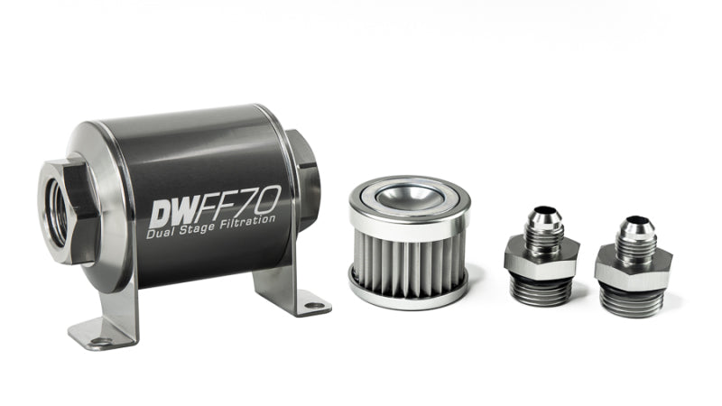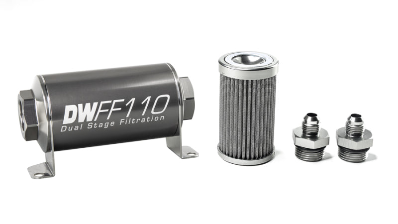 DeatschWerks Stainless Steel 6AN 100 Micron Universal Inline Fuel Filter Housing Kit (110mm)