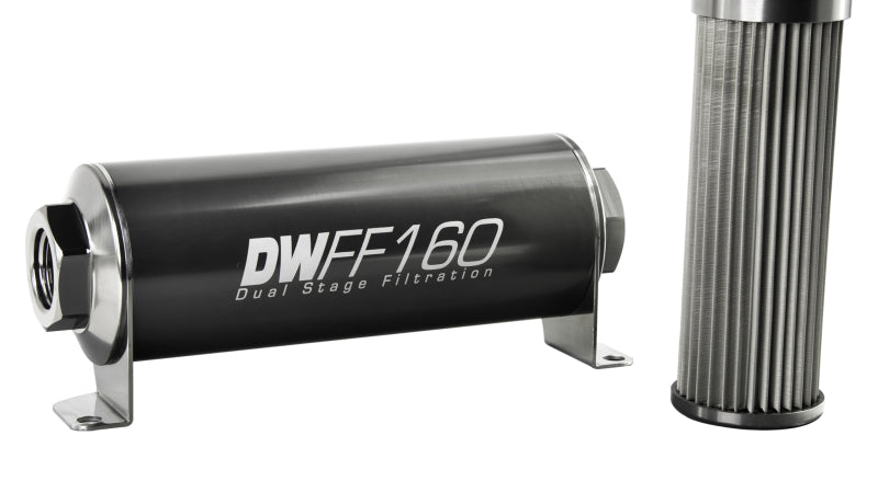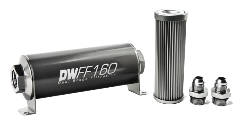 DeatschWerks Stainless Steel 10AN 10 Micron Universal Inline Fuel Filter Housing Kit (160mm)