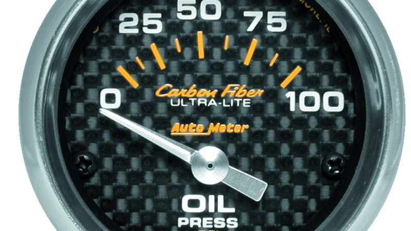 Autometer Carbon Fiber 52mm 100 PSI Electronic Oil Pressure Gauge