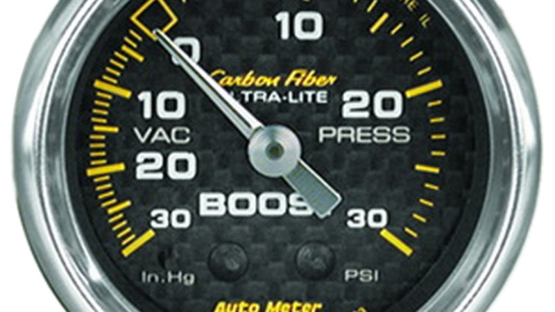 Autometer Carbon Fiber 52mm 30 PSI Mechanical Boost Gauge