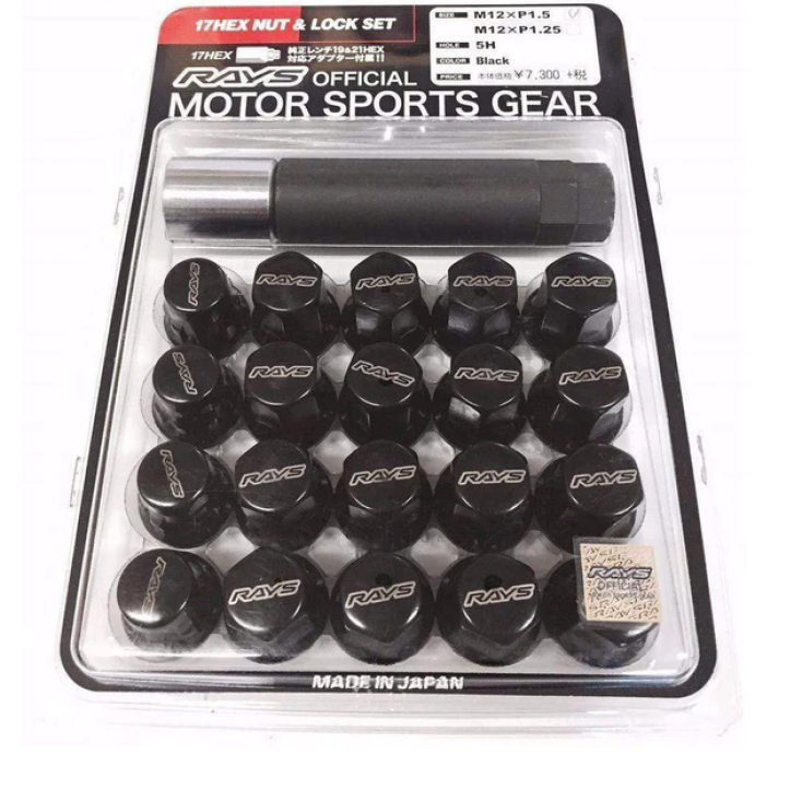 Rays M12x1.25 5 holes 16pcs nut, 4pcs Lock nut, 1 adapter & 1 lock nut key - Black