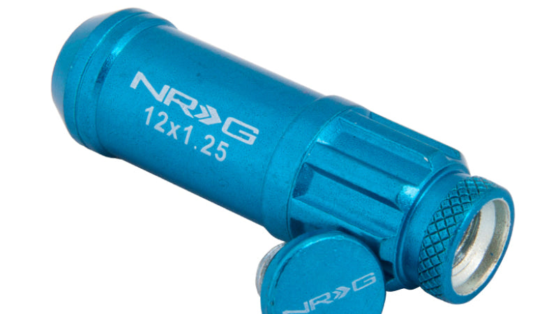 NRG 700 Series M12 X 1.25 Steel Lug Nut w/Dust Cap Cover Set 21 Pc w/Locks & Lock Socket - Blue