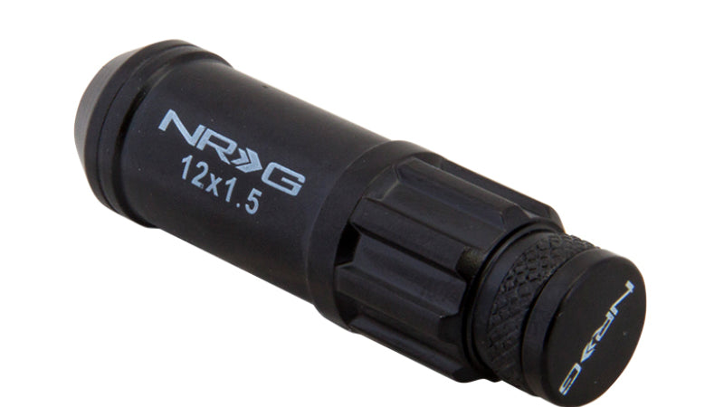 NRG 700 Series M12 X 1.5 Steel Lug Nut w/Dust Cap Cover Set 21 Pc w/Locks & Lock Socket - Black