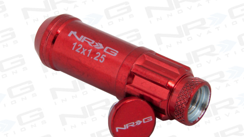 NRG 700 Series M12 X 1.25 Steel Lug Nut w/Dust Cap Cover Set 21 Pc w/Locks & Lock Socket - Red