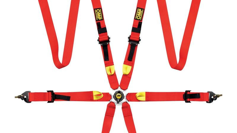 OMP Safety Harness First 2In Red (Fia 8853-2016) Pull Up - Steel Adj