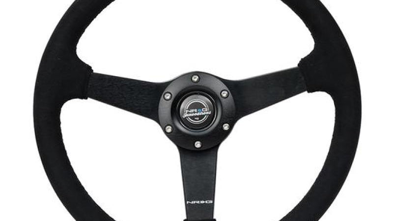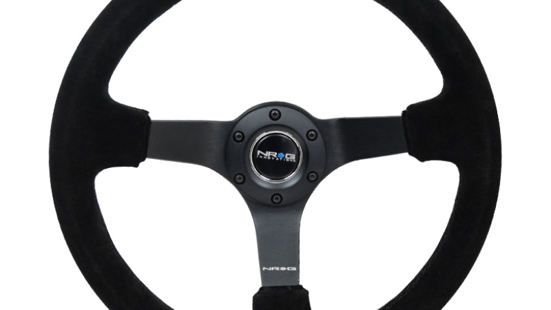 NRG Sport Steering Wheel (350mm/ 1.5in. Deep) Matte Black Spoke/ Black Alcantara w/ Black Stitching