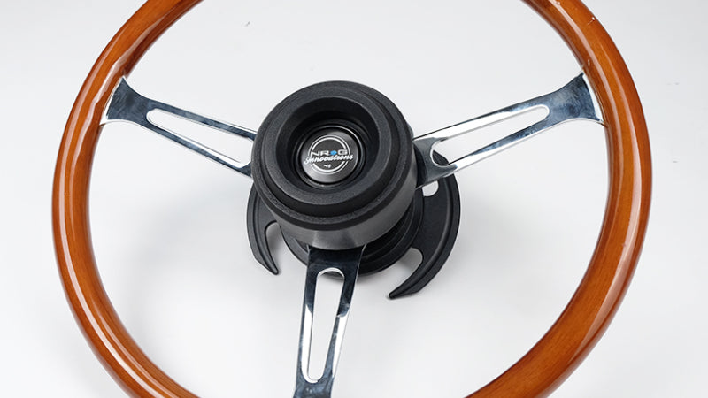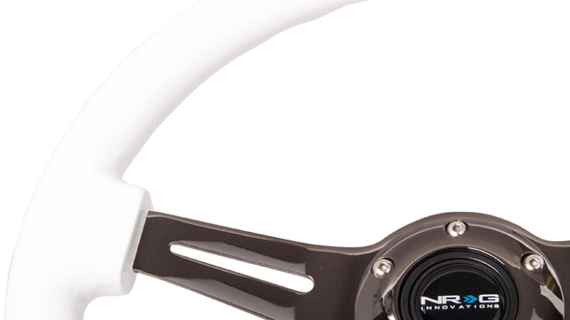 NRG Classic Wood Grain Steering Wheel (350mm) White Paint Grip w/Black 3-Spoke Center