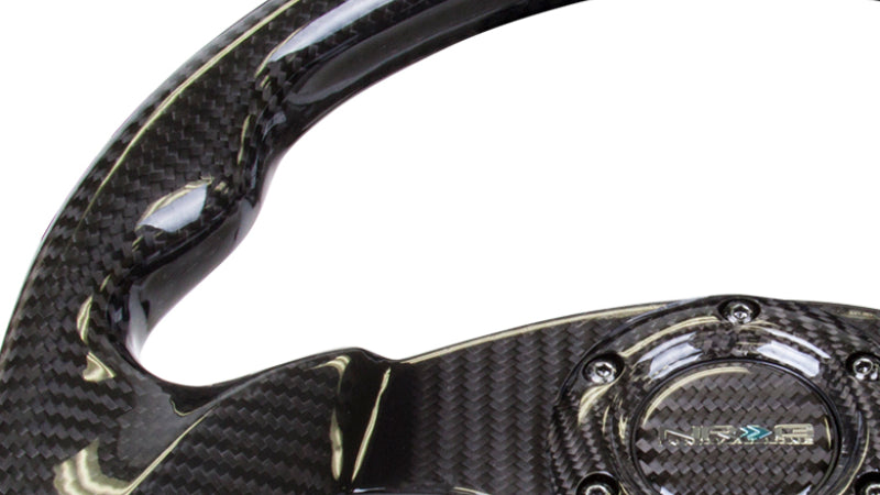 NRG Carbon Fiber Steering Wheel (320mm) Flat Bottom w/Shiny Black Carbon