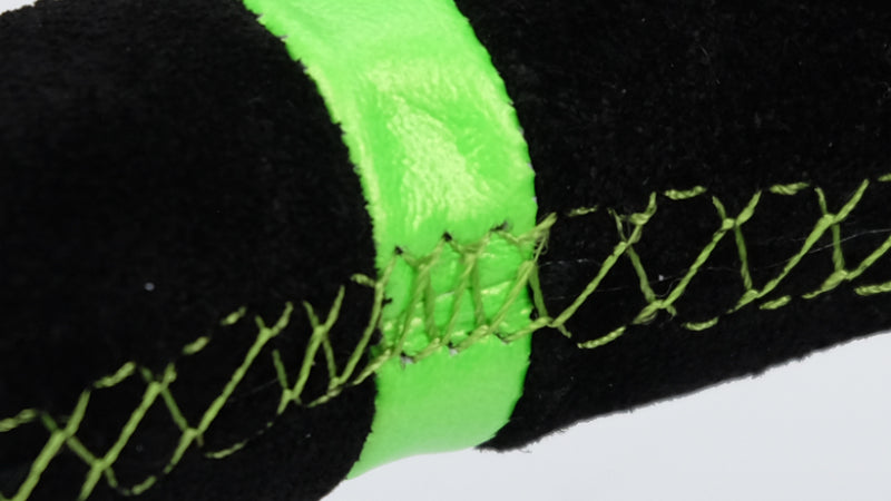 NRG Reinforced Steering Wheel 350mm/3in. Deep Blk Suede/ Neon Green Stitch w/5mm Matte Black Spoke