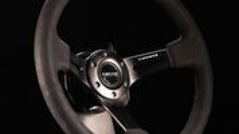 NRG Reinforced Steering Wheel (350mm / 3in. Deep) Blk Suede/Blk Stitch w/Black Circle Cutout Spokes