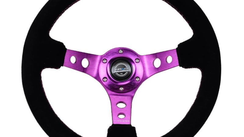 NRG Reinforced Steering Wheel (350mm / 3in. Deep) Black Suede w/Purple Center & Purple Stitching