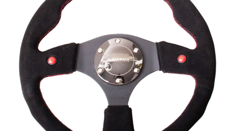 NRG Reinforced Steering Wheel (320mm) Blk Suede w/Dual Buttons