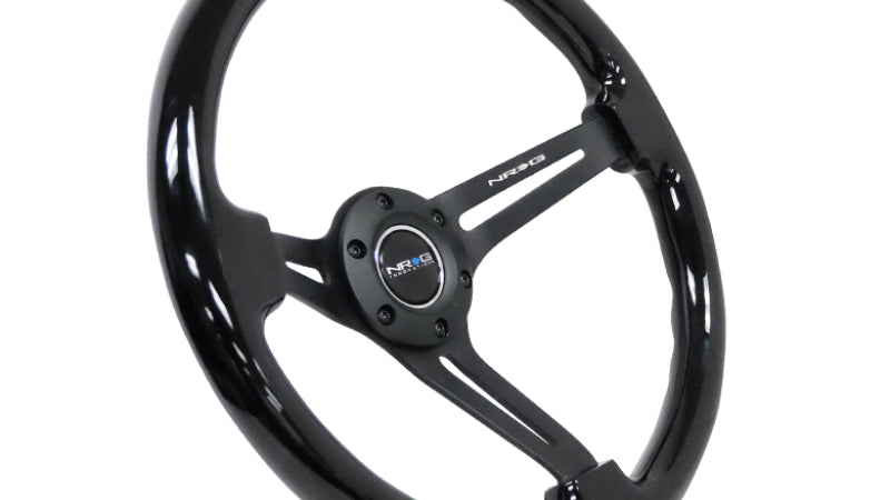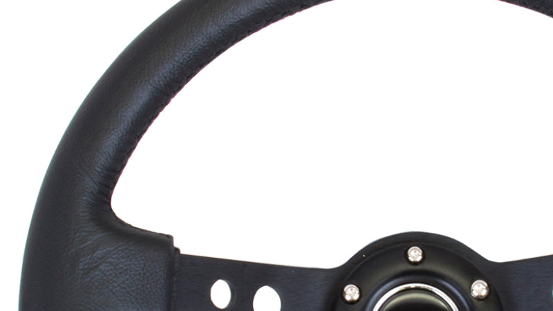 NRG Reinforced Steering Wheel (350mm / 3in. Deep) Black Leather w/ Black Stitching