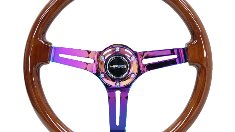 NRG Reinforced Steering Wheel (350mm / 3in. Deep) Brown Wood w/Blk Matte Spoke/Neochrome Center Mark