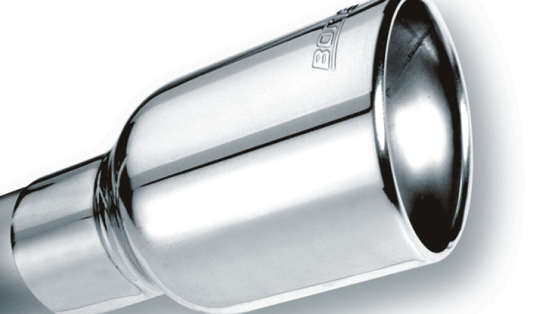 Borla 2.25in Inlet 4in Round Rolled Angle Cut Resonated x 13in Long Exhaust Tip