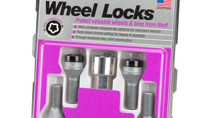 McGard Wheel Lock Bolt Set - 4pk. (Radius Seat) M14X1.5 / 17mm Hex / 28.2mm Shank Length - Chrome